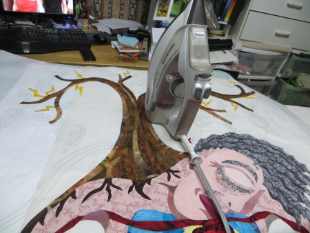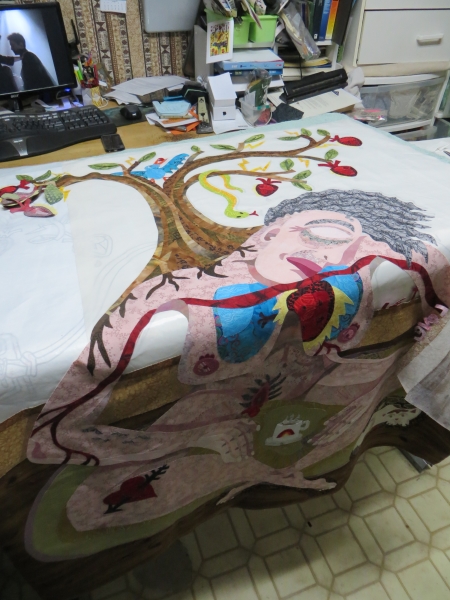 Thus begins a strange conversation. It’s Road to California, an annual quilt show. They want to know if I’ve shipped my quilt. Um. No? I didn’t get in. Yes you did. I didn’t get an email. It’s in your spam folder. It wasn’t, by the way…I do check all my spam and it never came…now I could have apparently checked online to see if I got in, but it meant logging in to my Road account, not just looking at an online list, and that was early December and apparently it never crossed my mind…I just assumed because they said they would only send emails to accepted artists that I hadn’t been accepted. Luckily, they did call me and were still willing to have me ship the quilt, because it was due back on December 27 (oops). So I’m in Road. Which I guess means I’m going to Road. And they took the naked one! I was shocked. So one of my uteri will be in Ontario (not Upland), California…January 23-26. I’m not going to show you a picture of it, because if you’re at Road, it will be the ONLY quilt with a uterus that is at Road. Seriously. Wanna bet?