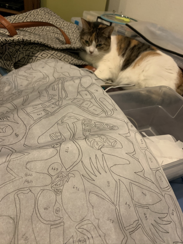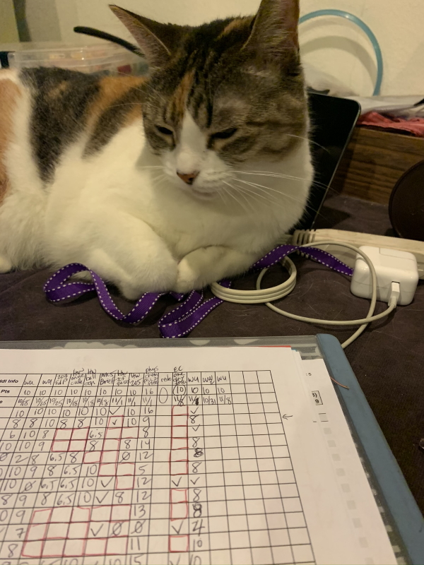 Yesterday was a cluster for making art. I had a meeting run long, and then the grocery store was empty. Made dinner, graded an assignment, and that was basically it. SUCKED. I hate that. Tonight? Ugh. Maybe. Got one assignment done, though. Thanks Kitten for your oversight.