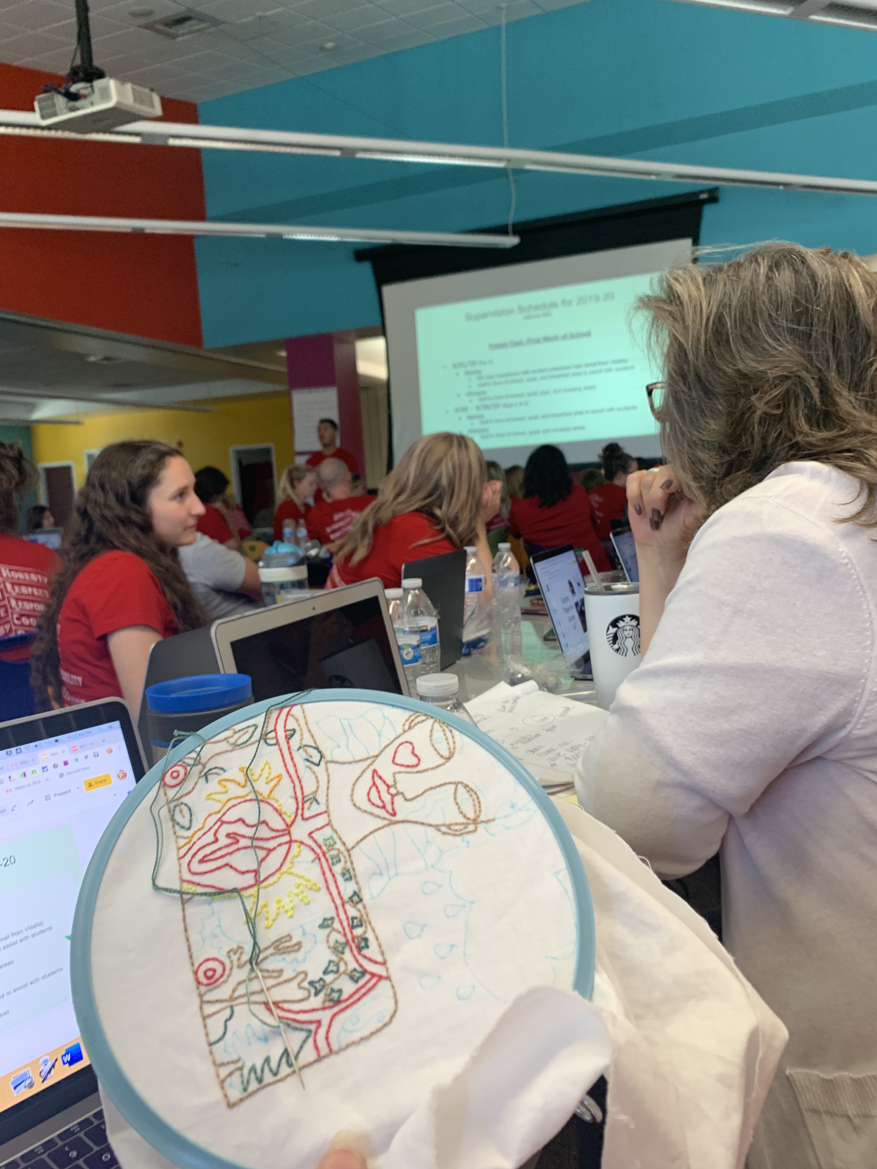 I did not MAKE any art, except for the few stitches I took. I knew this would be a rough week. But I had three things due and now I only have two. This is good.