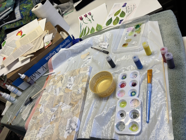 OK. So put away the last four quilts, which means pulling that roll down. Eat lunch. Read my book. Draw some. Pick up the dog. Go to pilates. Totally not in that order. Stitch some binding. Doesn’t sound hard. Oh yeah, need to finish filling two greenery trashcans so I can put them out tonight. They’re both mostly full, so just some more sweeping and trimming and then manhandling those damn cans out to the front. See, I have a plan! Even though I’m running late on everything. My version of late anyway.