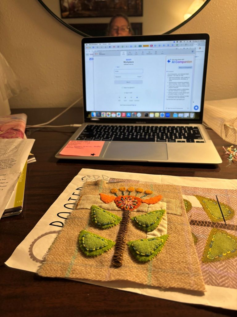Last night, I spent 2+ hours at a school board meeting…this is the third they’ve held on the same issue, and they tabled it again. I get why, but jesus. I stitched through most of it.