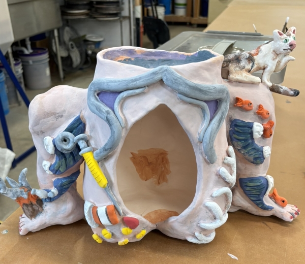 No ceramics since Monday…maybe tomorrow. I’m worried about the pup at the moment. He had some weird bloodwork come back and then they called me and asked if he could have been exposed to rodenticide (um no?). So I’ll just feel better when he’s home in a few hours. This was the look on his face when he realized I really wasn’t giving him breakfast this morning.