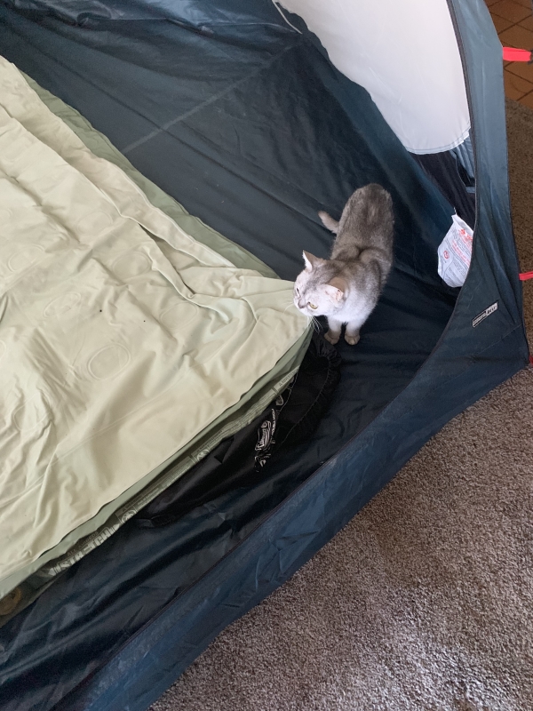 But it’s pretty tight…mostly because when it’s inflated, it’s pretty tall, and the sides of the tent go in, and it would be an issue with rain. Or sleet. Or maybe even snow…I don’t know, because I don’t think I’ve ever camped in snow. That’s probably not true. But I’ve blocked it out if I did, and now I’m old and the snow thing is really throwing me.