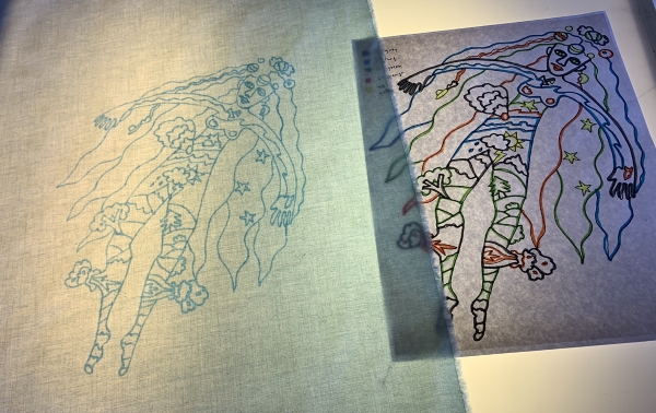 While dinner was cooking, I traced the next one, Earth Mother with Wavy Hair, using Saral transfer paper.