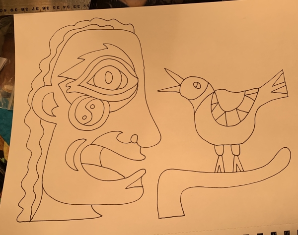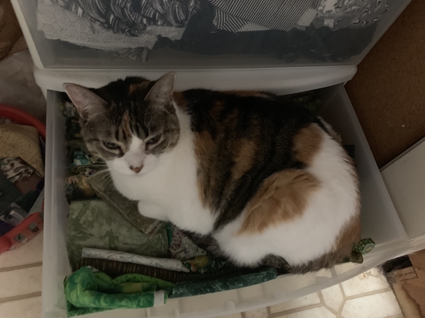Hi. I’m sick again. Twice in a month! Sheesh. The cesspool I work in…or live in. This one feels and sounds like it came from my bedmate. Not the cat. So there’s that. So I’m coughing up a lung. Or a planet. Hard to say. Plus no energy. So I didn’t feel well enough Friday night to do anything artistic. I graded and then I went to bed. First I fell asleep on the couch. I thought if I rested, I’d be able to finish the cutting out of pieces, and that didn’t happen.