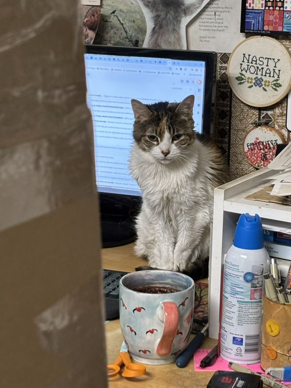 OK. So. I’m tired. I have lots going on tomorrow…and the next day and the next day. I do want to iron, though. Tough call. Also classes will be in here, in my studio, so stuff has to be cleared up enough for that to happen. Hmmm. There’s also some chance class will be rescheduled. Our teacher is not in a fire zone, but the wind has caused internet and electrical outages. The fires in Los Angeles, by the way…my goodness holy crapitude. I remember seeing fires up in the hills above where we lived when I grew up south of Pasadena. I know Eaton Canyon, hiked it and other areas up there. It’s hard to watch all of it burn. Damn wind. Climate change. WTF is Trump saying about letting the clean water run? Man is on crack. Maybe he needs the incognito window more than I do.