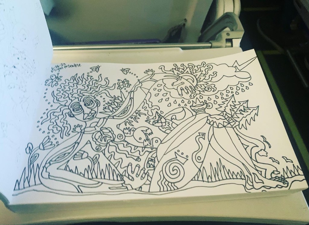 OK, so I’m outline quilting until it’s done, probably another hour or two. There’s thunder again. And more rain. Gloomy as shit this morning. Then to the quilt store. I have a friend and her son flying in tonight, so I am braving the drive to the airport this evening to get them and drop them at their hotel. Then quilting again tonight, hopefully, at some point. It’s movie night first. I think. Tomorrow is grocery shopping for Christmas, plus a hike, I hope. Finish quilting. Get a binding on probably Sunday? Not sure. Sunday is when family stuff starts for the Man, then mine on Monday. Y’all know how that goes.