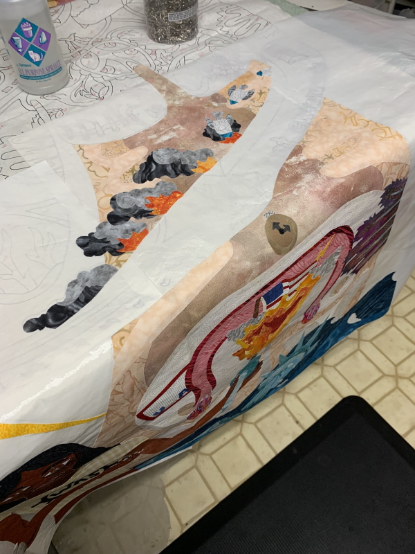 I’ve been ironing this thing together…it’s not hard so far, because the fussy stuff is in the body, and I did the whole background first…starting on Wednesday night…
