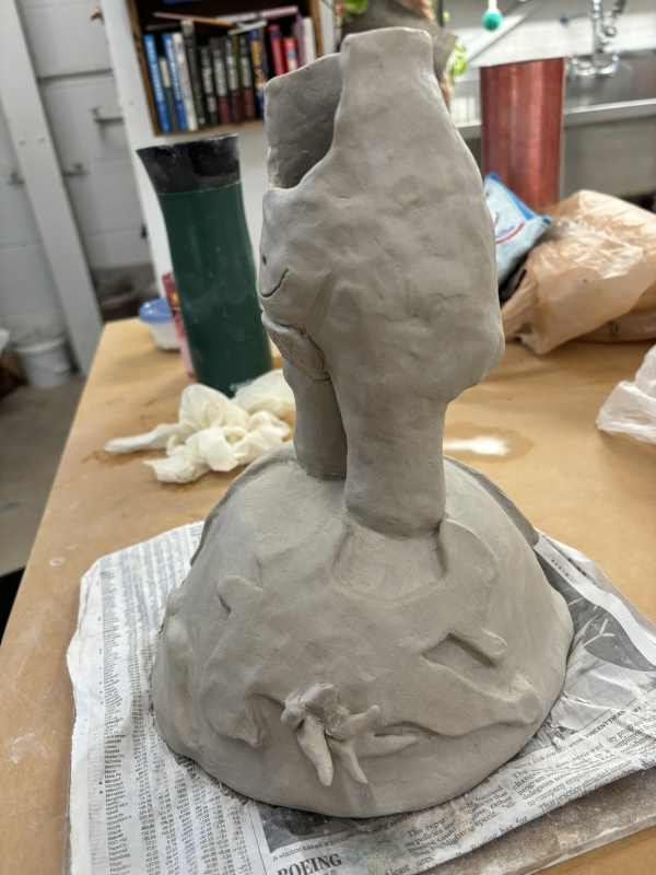And a wildfire…it needs smoke. I’m stuck in this place of not knowing how to glaze these types of sculptures. I’m going to have to think about it with the other female figure. She’s getting close to dry I think. Maybe. I’m doing it slowly. Anyway, this is fun. I enjoy it.