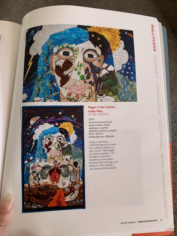 I also entered another show, which took over an hour, although that “family friendly” tag is in there, so who knows what will get in, if anything. I did get into two things yesterday, which is nice. Swallow Me Whole will be in Fiber Art Now as part of Excellence in Quilts…