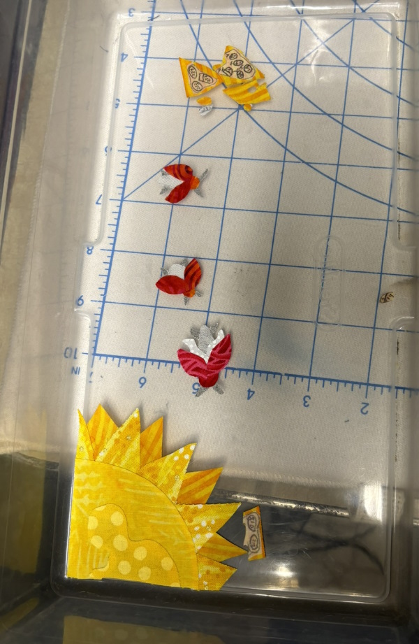 Almost done stitching everything down on this one…then embroidery. I’ve had so little time for embroidery or any handwork lately. I’m struggling to get the time to do any art. School is just such a timesuck. I graded all day Saturday, then finished the major assignment last night. I’m not doing school today, except for posting a video I took on Friday for the absent kids.