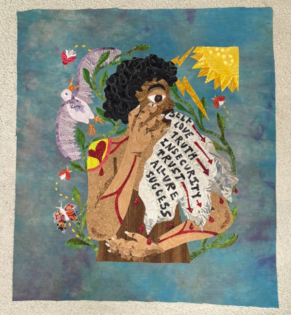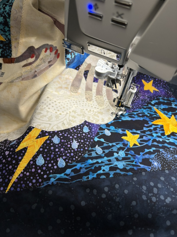 Almost done stitching everything down on this one…then embroidery. I’ve had so little time for embroidery or any handwork lately. I’m struggling to get the time to do any art. School is just such a timesuck. I graded all day Saturday, then finished the major assignment last night. I’m not doing school today, except for posting a video I took on Friday for the absent kids.