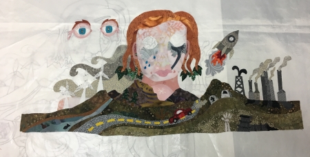 We were watching Logan, meaning I was stuck in the living room (which is not where the fabric is), so I stitched some wool bits down on the right.