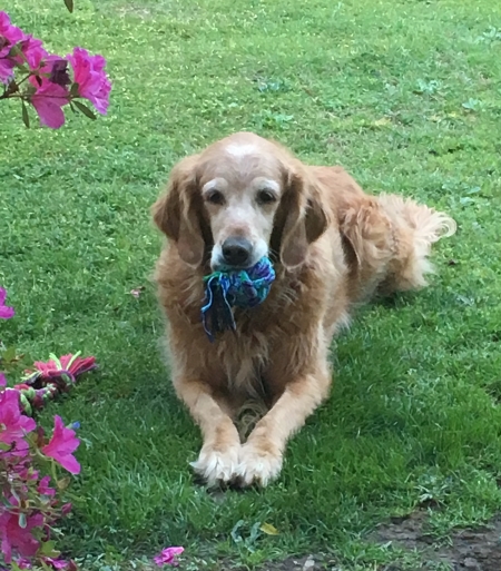 Yesterday, I managed to get my taxes done (hooray! but not in time to pay my property taxes, dammit) and go through all the camping equipment we have, so we could figure out what we’re missing. Calli hasn’t been to Grandma and Grandpa’s for a while. Grandpa throws her the ball on a nice flat lawn…