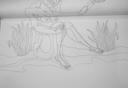 Yup. It’s been 24 hours or so of that. I might have slept a bit, but crazy nightmares of mud and blood and car accidents and disturbing imagery (I know, crazy, when you look at my drawings, but they have to come from SOMEWHERE, right?). And I think, what the hell were you doing last night? I went to an art opening (4th one in the same number of days?) and then I came home and ate dinner quietly by myself and watched four episodes of Elementary (um. Kathy. Sherlock is a bit creepy.) and cut out a shitload of Wonder Under.