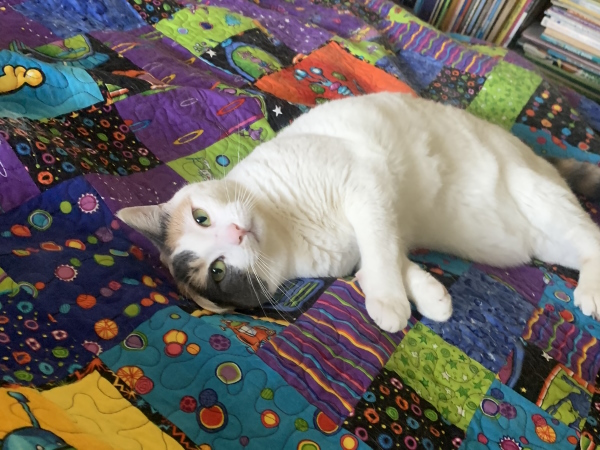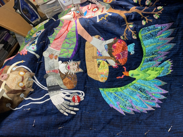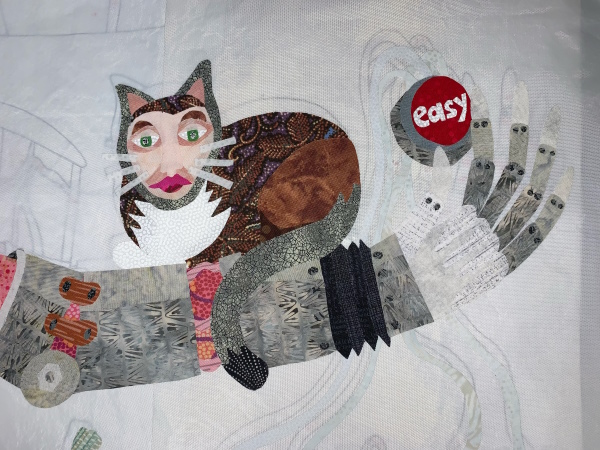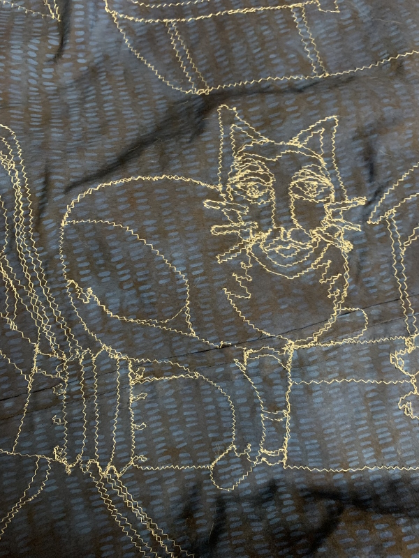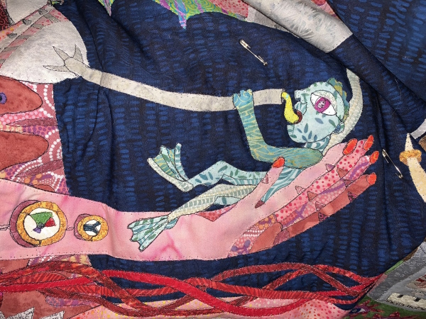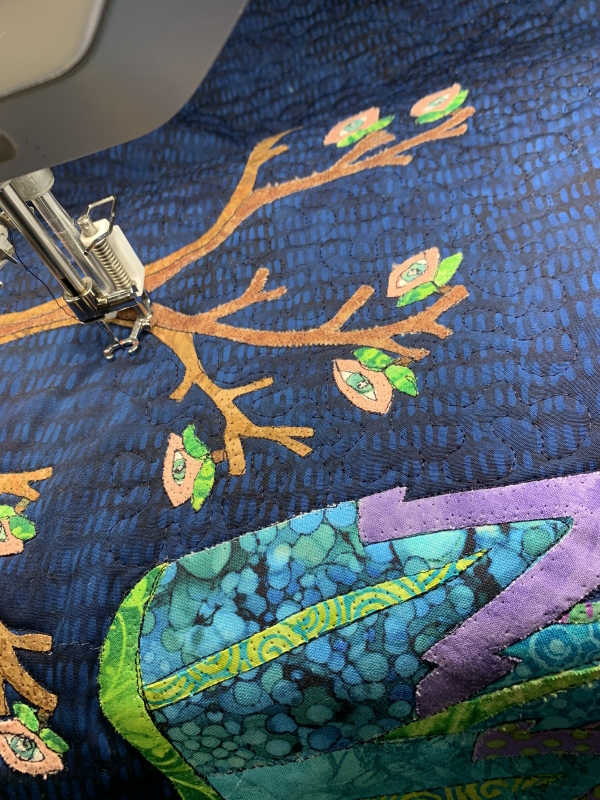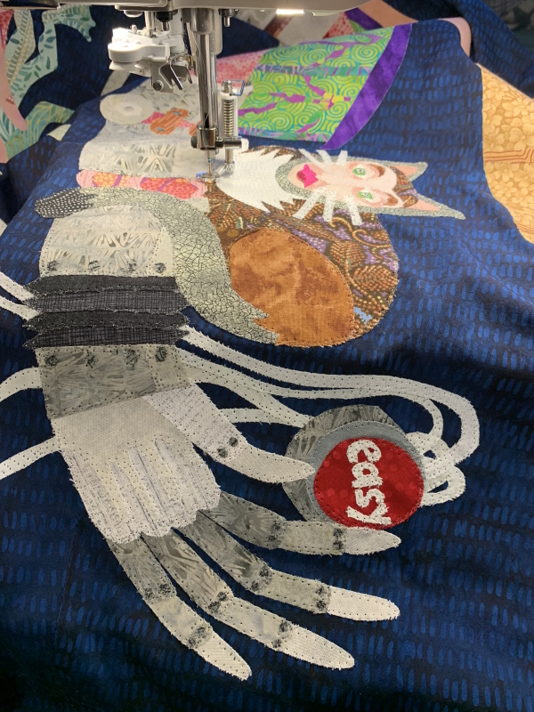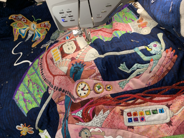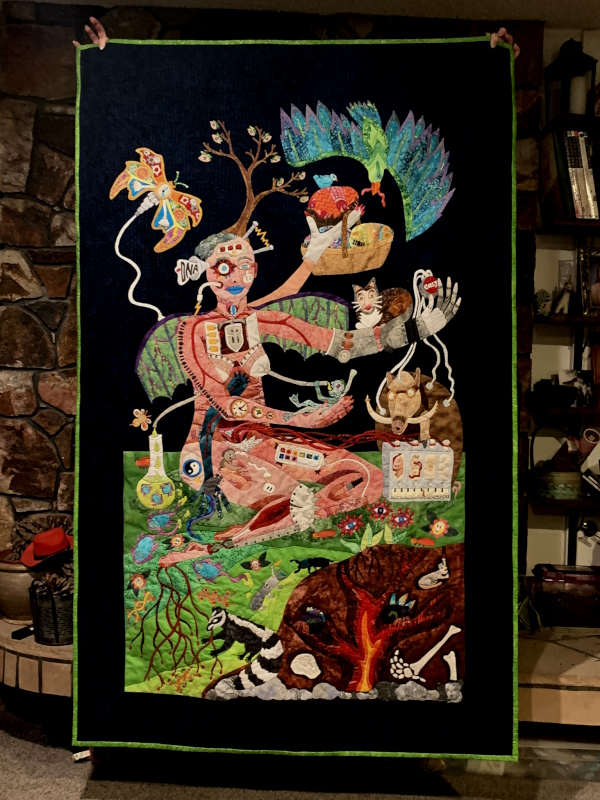 I really loved making this quilt. It’s a lot of weird biopunk, genetic engineering, and mutational wonder. You can thank my reading Margaret Atwood for the last 30 years, plus all the other dystopian sci fi I’ve read over the years. Plus my overactive imagination. I’m glad it will travel.