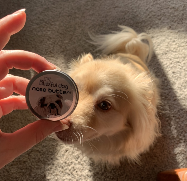 Seems to be working, although he’s not truly a fan of the process. It’s all natural, so when he licks it off, it’ll probably just help his coat be smoother. That’s what I tell him anyway. He gives me side-eye.