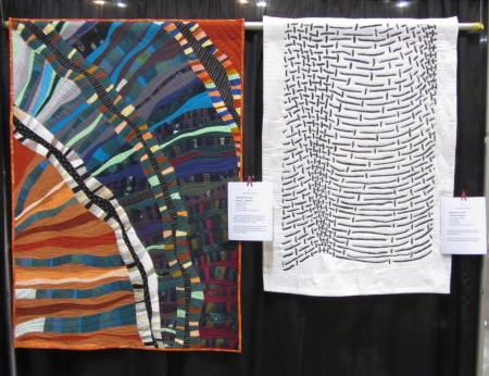 Both pieces have hints of traditional piecing and patterning, but the details of quilting and pattern move beyond the traditional.