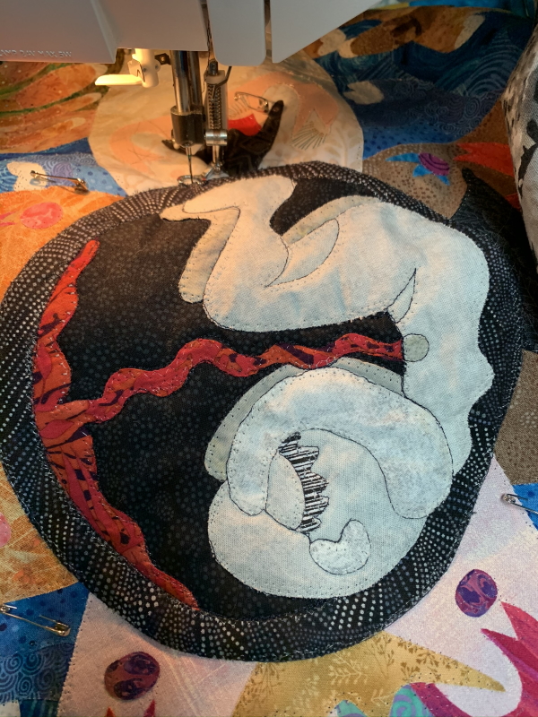 This is still from the back. You can use a variety of fabrics, but I stuck to jersey because for me, it was more about the image than the texture.