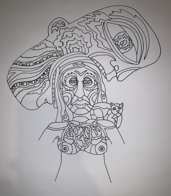 I spelled it like she did…it’s not hung up yet because I wanted to put a sleeve on it, and last night, I finally did that. I met Margaret some years back (when she was still 80-something) and we liked each other’s work. She contacted me earlier this year about trading a piece of art, and I agreed, so I sent one off to her of her choice, and I got these wonderful eyeballs (I did pick it for Hello Kitty too) back…so now she can hang on my wall.