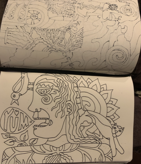 Keep it simple! These are small. It’s the sketchbook that fits in my purse. I got a new purse, a smaller one, but the sketchbook doesn’t fit. Dammit.