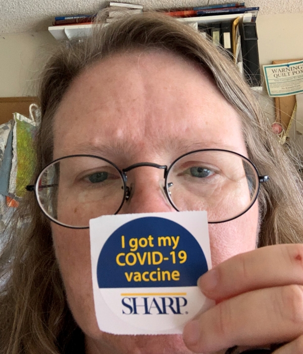 I also was cleaning up my blogroll this weekend (like you do…once every 5 years, whether it needs it or not), and noticed that an artist I really enjoyed, Olga Norris, had passed away in 2019. I obviously have not been doing a great job of reading blogs. Every year, at the SAQA auction, I would note the Olga Norris piece and get outbid at a much higher rate than I could afford, sadly. Well, her husband is still supporting his wife’s work and posted photos of her last pieces, and offers them up for postage and donations to a charity of Olga’s choice, which is just amazing, so I will finally be proudly displaying one of her pieces here as well. It does make you think about what will happen to all your work when you die, though. I’m sure my children would love for me to have a plan.