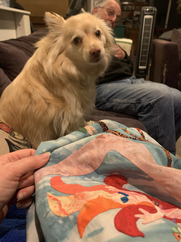 I also was cleaning up my blogroll this weekend (like you do…once every 5 years, whether it needs it or not), and noticed that an artist I really enjoyed, Olga Norris, had passed away in 2019. I obviously have not been doing a great job of reading blogs. Every year, at the SAQA auction, I would note the Olga Norris piece and get outbid at a much higher rate than I could afford, sadly. Well, her husband is still supporting his wife’s work and posted photos of her last pieces, and offers them up for postage and donations to a charity of Olga’s choice, which is just amazing, so I will finally be proudly displaying one of her pieces here as well. It does make you think about what will happen to all your work when you die, though. I’m sure my children would love for me to have a plan.