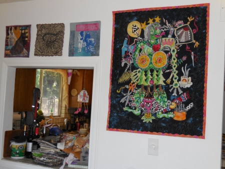 They’ve had hanging slats for about a year now I think…the one on the right is one of my older pieces, pre-divorce, believe it or not (so fucking ancient). It’s one of my favorite pieces…Caught in the Headlights (2002). And yes, my kitchen is a disaster. I’m working on it.