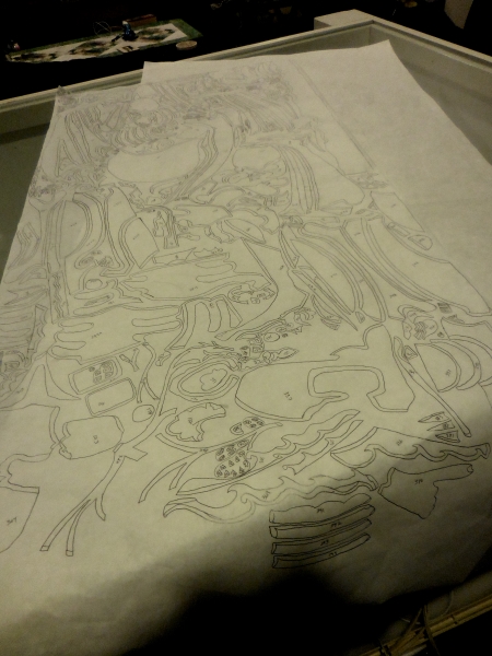 Today? Doctor’s appointments, school shit, lots of details (apparently that cat up there on the light table? She wants food. Demanding beast.). Hopefully some more tracing will get slotted in there, so I can get that part of the project over with and move on to the next piece. I’m also trying to get my freelance copyediting business up and running, and to exercise in there as well and maybe even sleep more than 5 hours a night. Really. I feel like I should be able to sleep on vacation! Stupid brain.