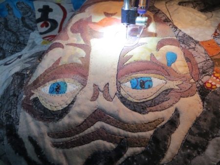 Yeah, well, we know how depression deals with all those feelings. That said, meditation is focusing on this visualization technique and I am rocking that. There’s something about my ability to see quilts fully colored in my head that translates to this ability to visualize myself filling with warm light, the warm light of creative thought. It’s a good place to be…in meditation. I cry still, but it’s tempered by this calm feeling of being filled by some artistic thing…some creative thing. So many people are lacking that…lacking an ability to create, to make, to draw, to paint, to take what’s in their head and make it INTO something. I have that. I’ve had it for as long as I can remember. I have that and I am so glad that I do, because it pulls me up out of the muck. I’m still depressed, but I’m not crawling into bed and not getting out. I’m not refusing to shower. I’m not crawling into a hole and never coming out. I’m not suicidal. I could be. This experience has been bad enough, has dragged me low enough that I often think I just don’t want to be awake…I don’t want to exist, please don’t make me get up and get dressed and deal with the world. I just can’t. But the art is there, banging on my skull, saying FUCK YOU. GET UP AND MAKE ART. So I do. And I know that’s the way out of this crap…and I will eventually GET out. But I also know what it looks like to want to give up and not deal with anything. That even doing the laundry or grading papers or saying hi to someone in the morning is sometimes the hardest thing in the world for me. Sometimes I wonder how I get up, how I get in the car and drive to work, how I manage to do anything at all. Simple. Art brain. It’s saving my life. It’s making me deal. It’s taking on all the pain and crap and shit and it’s pulling me along, whether I like it or not. And when the days are really bad, really low, it puts the pen in my hand, it makes me sit down at the sewing machine, it pulls fabric out of a drawer, and it makes me be…exist…survive.