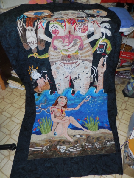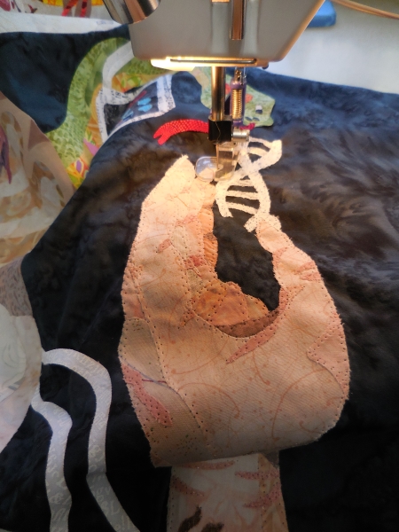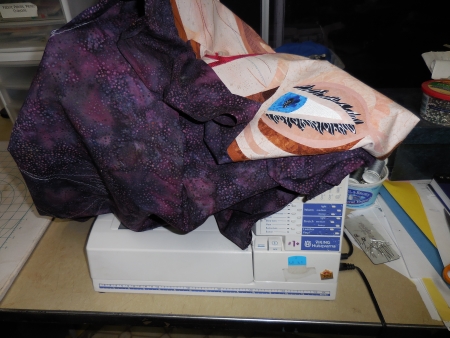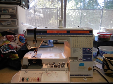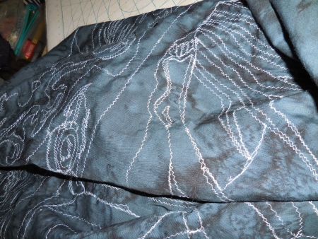 At some point, the machine was doing that stupid excessive thread-breakage thing, so I fussed with it, changed a needle, used something on the thread, which is probably old. Tried to slow down. Less herky jerky.