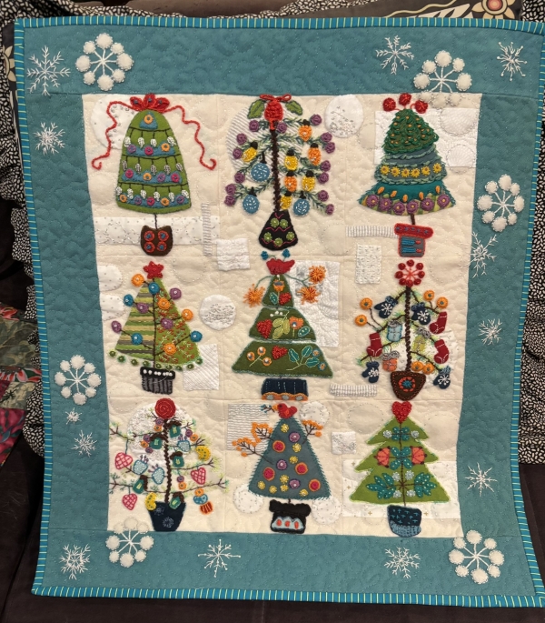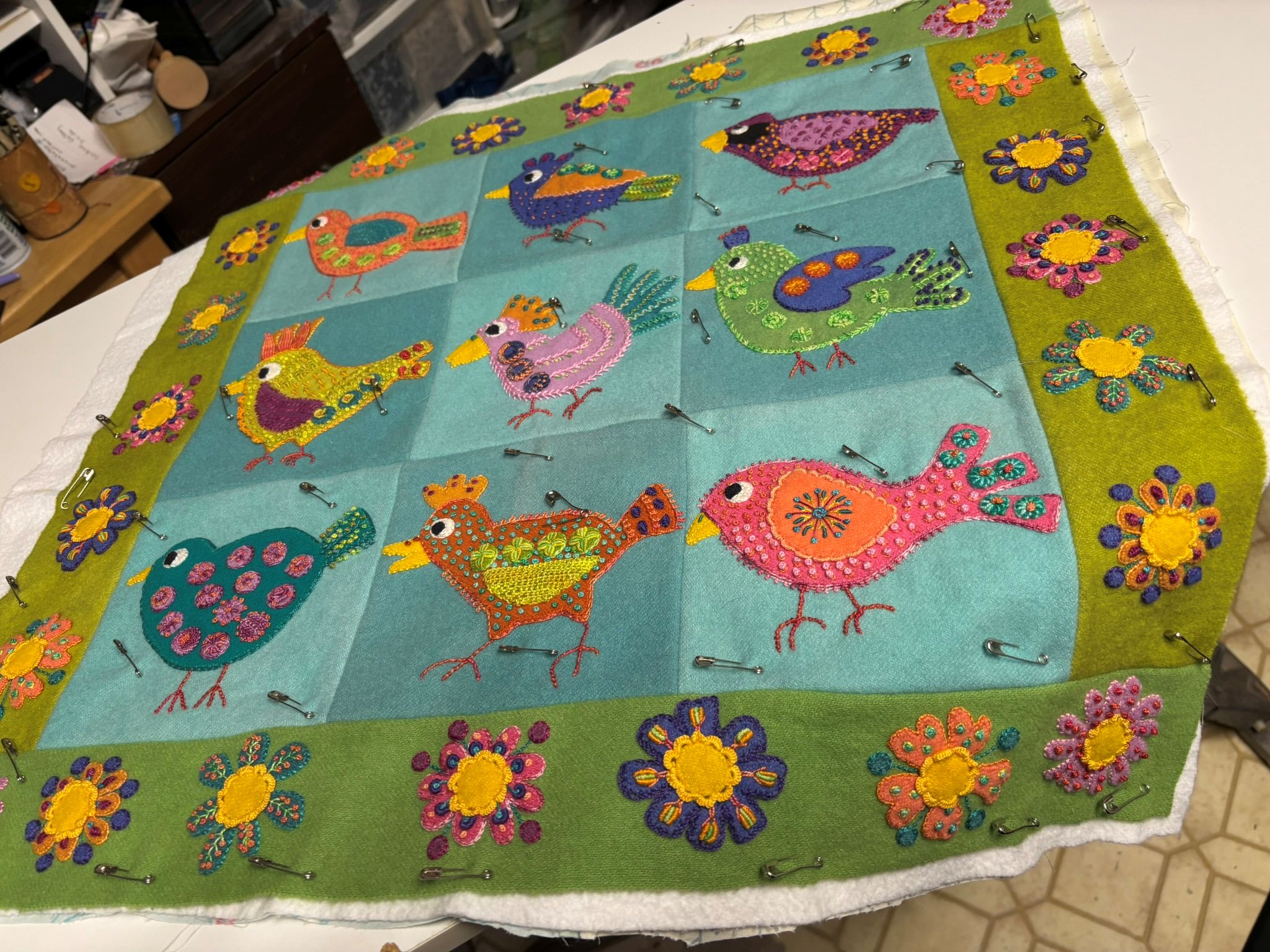 I finally finished appliqueing all the border flowers on Sue Spargo’s Homegrown…