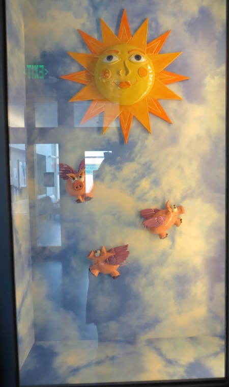 There were lots of whimsical things going on here. It was interesting, though, to walk into the family waiting room next to her room (she was sleeping and I was on the phone with work people about the chaos I missed but still need to know about), and to look at the giant photographs in the room and realize you know the artist, that she’s in one of your art groups. Wacky.