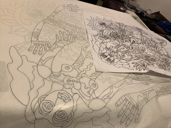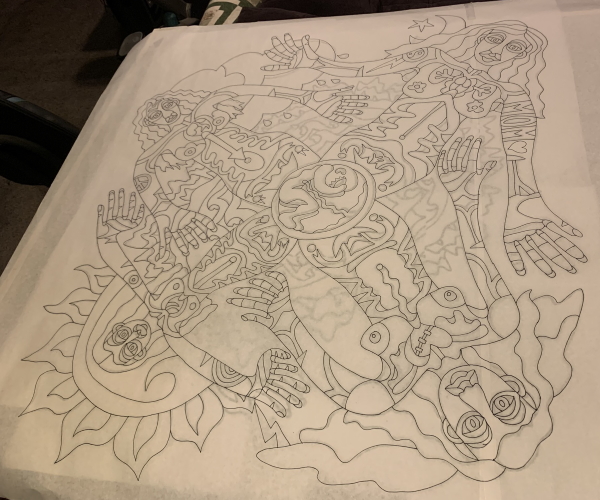 Of course, technically it has nudity in it, so it can’t go into any of the shows coming up that need smaller pieces. I’m tired of making things FOR something, though, even though I don’t mind the themes that I’ve been in…sometimes you just have to make the stuff you WANT to make. I’m getting a wave of that feeling coming on…strong. I traced this also because I was watching something on Netflix that I couldn’t watch in my studio and I wanted to finish the episode.