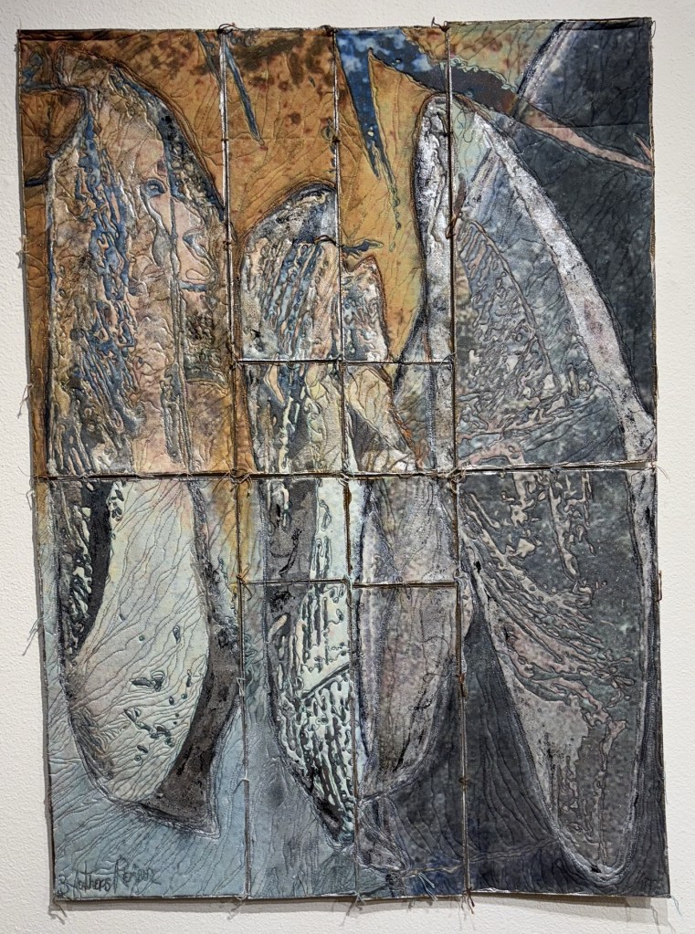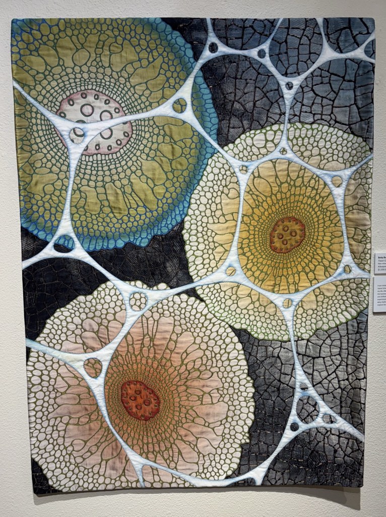 When we got back, we rested a bit and headed out for bao and dumplings, which was fun. We happened to walk through an art exhibit on the way back and saw two art quilters’ work I knew…Joe Cunningham’sShelter dominating the exhibit.