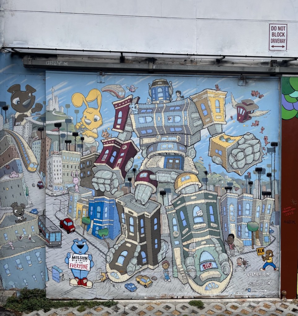 I love the detailed storytelling murals. This is Mission Makeover by Lucia Ippolito & Tirso Araiza, her father.