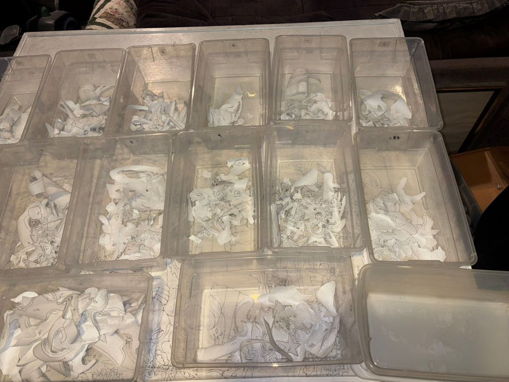 Then I sorted the first 100 pieces, after cleaning up the studio and moving Kitten’s stuff around.