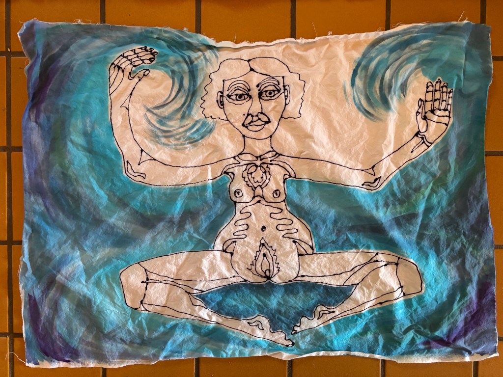 I’m back home. Briefly. Like four days, then gone again. I seem to have squished all my travel into a two-week time period. Like it’s almost not worth unpacking before packing again. Different trips though. For the residency, I needed to take seven thousand modes of artmaking. For visiting my daughter, I can stick to a sketchbook and some stitching. I do want to finish up using the dyes today…I should already be doing that, but I got distracted by things. I am very distractable. Distracted. Possibly distracting.