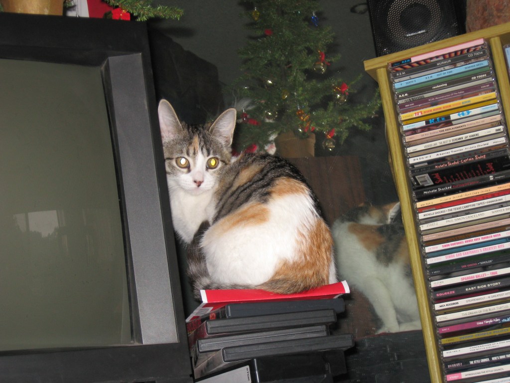 OMG…look, CDs! WTF. Back in the day. She was feisty, which meant she survived the dogs…you know, I think we only had Ivy at that point? I think Calli came in 2009. So just Ivy and Midnight and Limbo…so she didn’t answer to her name, but she did answer to Kitten. So she became Kitten, and eventually I had to tell the vet, because they would call about Holly and I’m like, who the fuck is that. Doing well, y’all. Even back in the day. The kids were in elementary/middle school. I had just started to teach in the valley here instead of driving 45 minutes plus into the mountains.