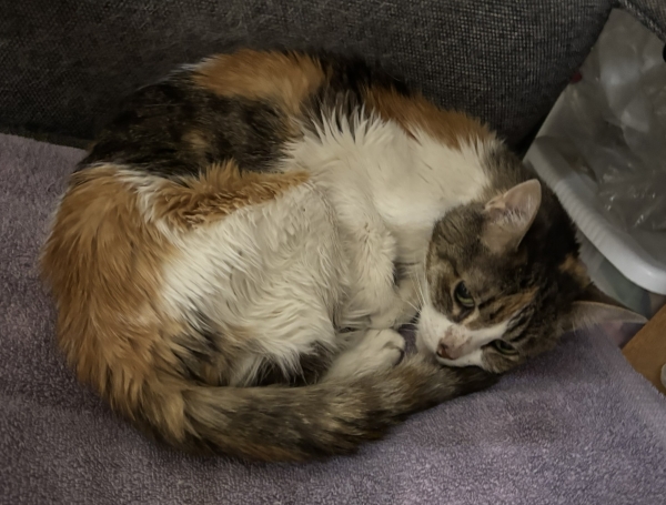 She survived many other animals coming through here. In the last month, we basically had to move her permanently into my office (she was already living there for like the last five years, although she’d venture out, even sleep with me…best memories ever of her curling up under my armpit, however uncomfortable it was. But Bowie was insistent on bugging her, so we finally moved her food and litter into my office. Yes it was a pain and sucked for me (I hate stepping on litter and it’s always everywhere), but it was more peaceful for her, and she needed that. She slept a lot the last few months. She had inflammatory bowel disease for the last five years or so, and we’d finally gotten medications that seemed to be working, until the last week. She would have episodes, like they do, and she’d rally. There were many times in the last year when we thought she was done. She’d lose a ton of weight and stop eating and then she’d come back. But this time, she was sick over and over again and I knew we were probably done. It’s hard to make that decision, and certainly it’s one I’ve been debating for a few months now. She knew it was time, even if I didn’t; Because she was so feisty, the vet had tags on her file, and when I took her in, she was purring and chill and headbutting my shirt, like she does when she wants love. So I gave her all the love I could and said goodbye.