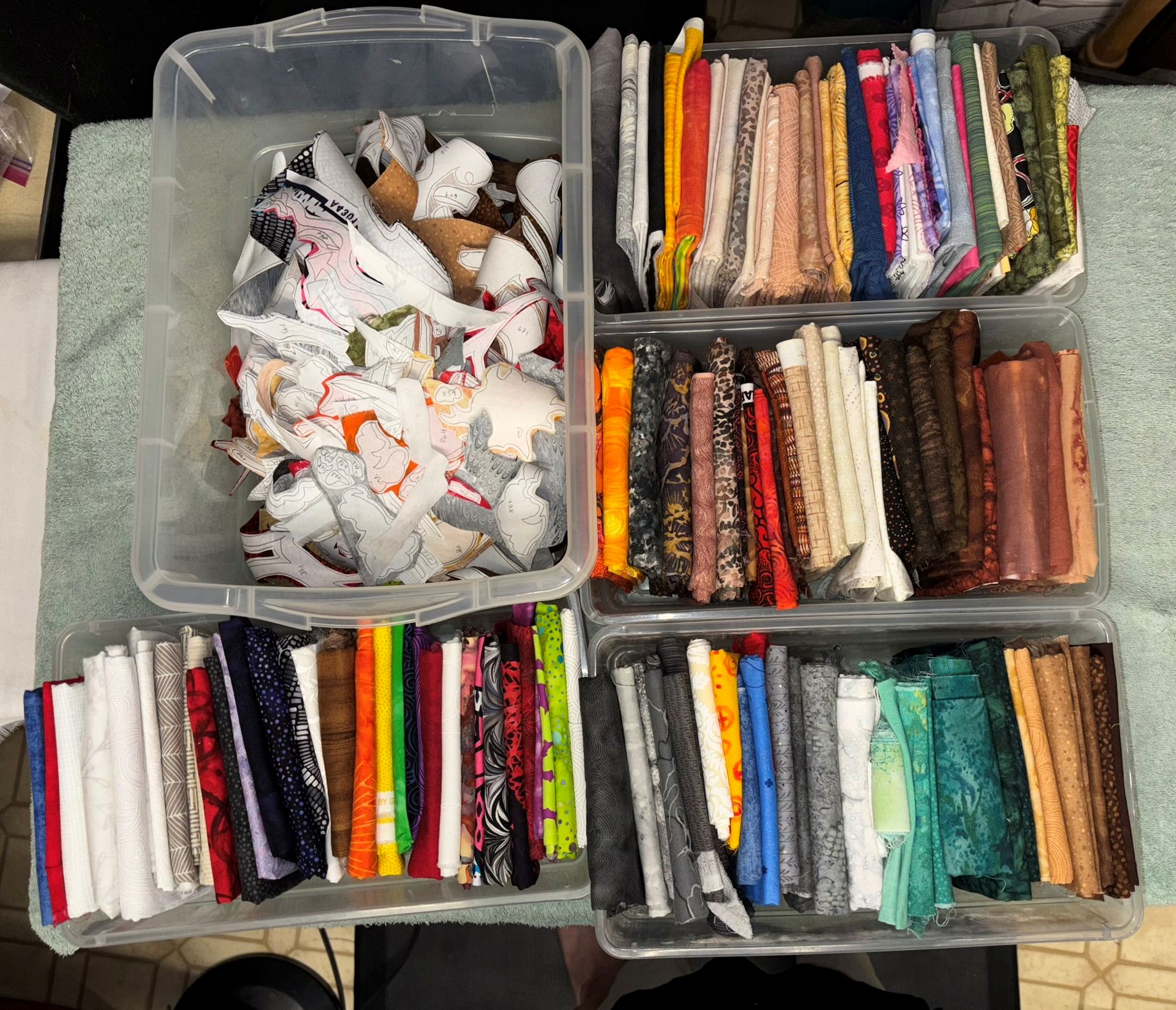 I also managed to make my Quilt National artist talk video (only 4 tries to get it under time without my staring off into space because I’ve forgotten the plot multiple times). Today, I need to clean up the dye stuff, wash out those two, and pack for leaving tomorrow midday. San Francisco is like 20 degrees cooler than here, so packing is intriguing. Plus two days in hot. It’ll be fine. I’m actually really looking forward to all the art stuff. And the kid. She’s cool, mostly fun to hang with. She probably says the same about me.