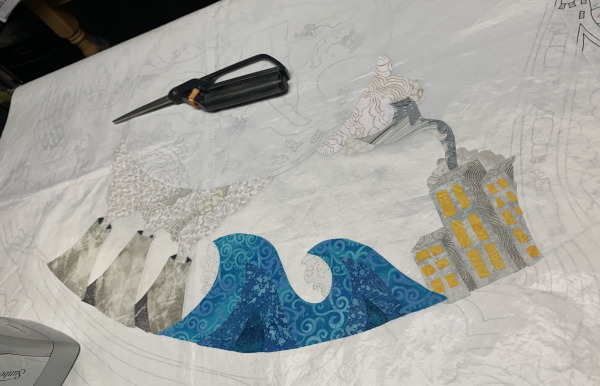 So that’s cool. Meanwhile, I’m making the next piece…it’s coming together slowly. I have the first 300 pieces (mostly) ironed together…including all these tiny little cars…