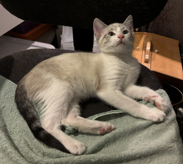 This one is kind of refusing to come out to eat. Poor kitty.