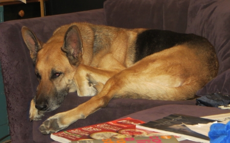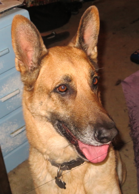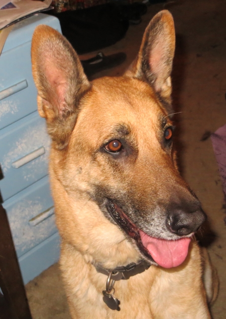 He’s been bopped by every cat in the house now, and yet he still tries to eat them. He would also like to go out and run free for a while, but we’ve told him he has to stay in the backyard, where he barks a lot. Boychild took him over to their dad’s house on Saturday so he could run around there…although he CAN escape, strangely he doesn’t if someone is home.