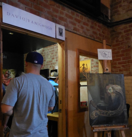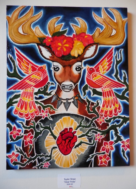 I meant to write yesterday, because we went to four different art exhibits on Saturday night, but I never got around to it. So here they are…first we went to Oye Como Va at La Bodega Gallery…the Flying Panther Tattoo family made all these. This is by Rob Benavides…here’s an article about him with some contact info.