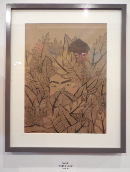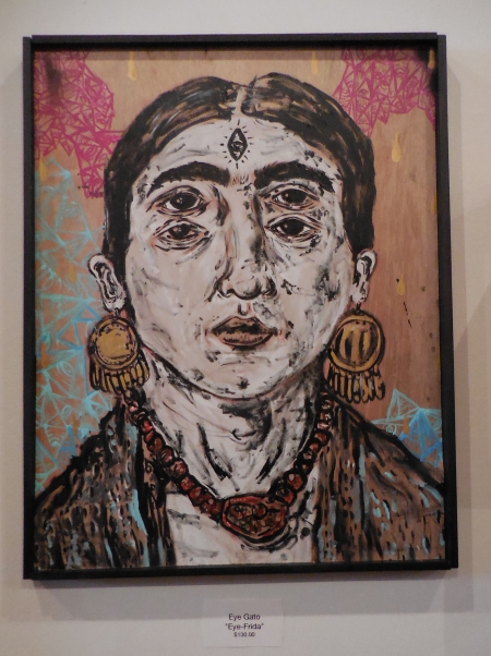 You’d think we’d have been done by then, but there was one more, which would put us in a place where we could eat…at Visual Gallery+Design, an exhibit called Unfolding. I knew of two of the four artists…this is Sofia Silver’s Cosmic Eye…