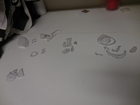 After dropping the dogs at the vet, my co-teacher and I covered this table with crap and worked for 6 1/2 hours on curriculum planning…