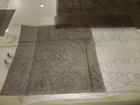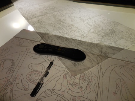 April I think? And I enlarged it about 200% and then realized I had a whole ‘nother figure to draw and the piece could be up to 60″ square. I like big quilts. I like lots of detail. This was going to be my summer quilt, and yes, some other stuff jumped in front of it, but I delivered two quilts to the photographer today, and I’m feeling good! So yesterday, I pulled this one out…