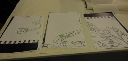 So there’s the original drawing from the sketchbook with the stuff added on top, bottom, and left side.