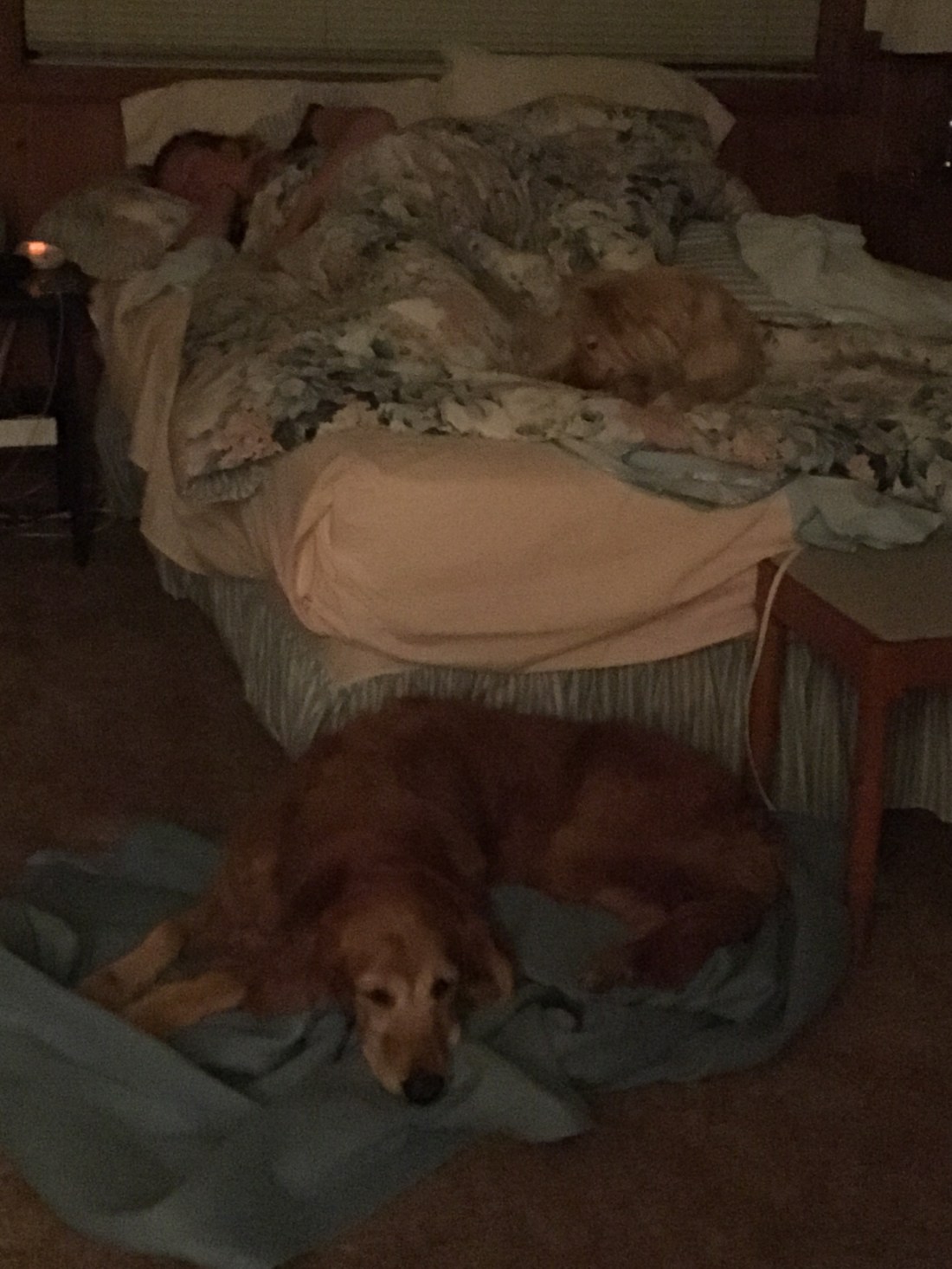 Then I had a good visit with an artist friend but when I got back, it was apparent to me that thunder had happened. Calli doesn’t like thunder any more. At all.
